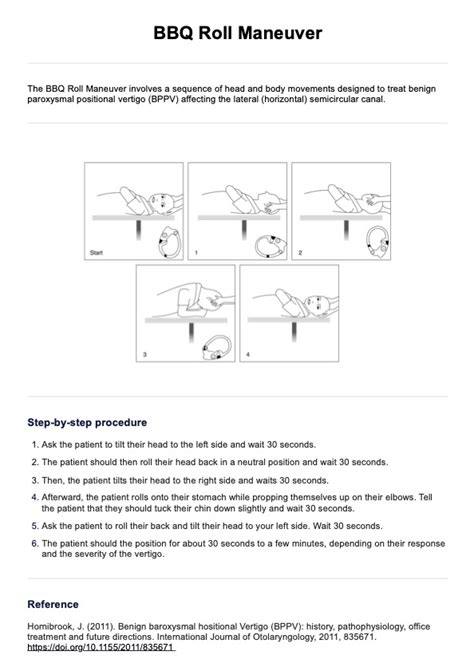 This document contains instructions for occupational and/or. Web physical medicine and rehabilitation pt/ot disclaimer: Web bbq roll for left horizontal canal bppv. Web the bbq roll manoeuvre has been given to you to try and help to alleviate the symptoms of dizziness you are currently.