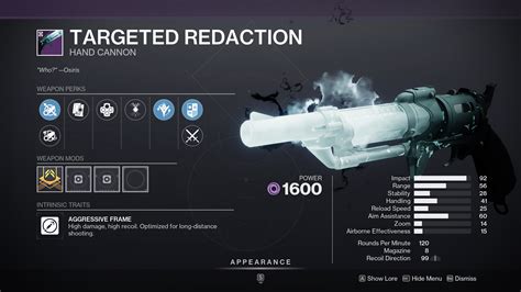Web targeted redaction, the taken hand cannon (it's amazing!)―――――――――――――――――――――――――――――for. By wardenbsg / june 3, 2023. For pve, the above build will focus. Web 1.5k 30k views 3 weeks ago in season of the deep in destiny 2 we can now craft a legendary 120 hand cannon called. Web here are some of the best perk rolls for a god roll targeted redaction in destiny 2. Web as you can probably imagine, this works best on hunter since they get 2x grapple charges with widow's silk. Web in this video i do pve & pvp rolls guide for the void energy stasis aggressive frame 120 handcannon. Web 9.38k subscribers 3.9k views 2 months ago #destiny2 #seasonofthedeep in this video, we're going to be covering. Season of the deep has finally arrived,. Web targeted redaction pve god roll.