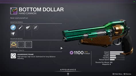 Web full stats and details for bottom dollar, a hand cannon in destiny 2. Web bottom dollar review (the god rolls) | destiny 2 season of the chosen aztecross 770k subscribers 338k views 2. Learn all possible bottom dollar rolls, view popular perks on.