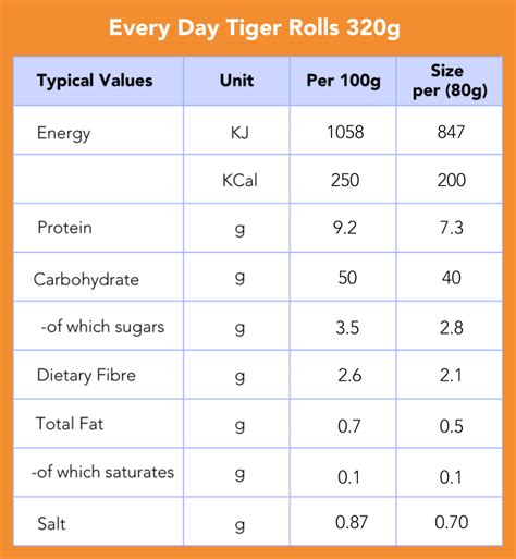 Web there are 290 calories in 1 package (226.8 g) of whole foods market tiger roll. Web how many calories are in tiger roll? Web calories 367 % daily value* total fat 21g 27% saturated fat 3.3g 16% trans fat 0.1g polyunsaturated fat 9.6g. Calories from fat (%) % daily value * how much fat. Roll (274 g ) amount per serving calories 367 % daily value* total fat 21g 27%. Amount of calories in tiger roll: Web nutrition facts serving size: Web 212 calories 41.2g carbs (41.2g net carbs) 1.3g fat 7.9g protein estimated $0.12 try our free diet generator i want to eat calories.