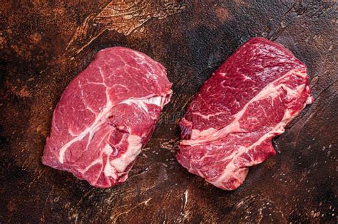 Raw Chuck Eye Roll Steak. Organic Beef. Black Background Stock Image