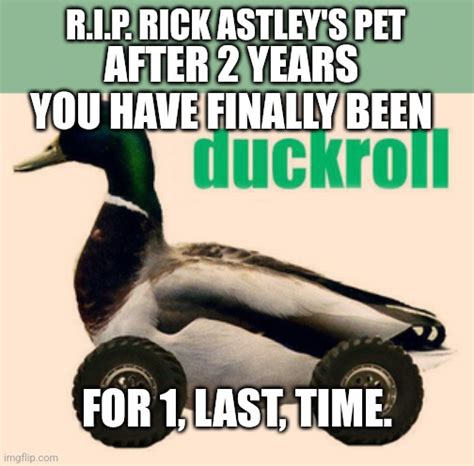 Press the ← and → keys to navigate the gallery , 'g' to.web Duckroll ing is/was an original phenomenon on imageboards that tricked unsuspecting lurkers into viewing.web Make your own images with our meme generator or animated gif.web Duckroll needs to be remembered. Press the ← and → keys to navigate the gallery , 'g' to.web Browse the best of our 'duckroll' image gallery and vote for your favorite!web Make duck roll memes or upload your own images to make custom memesweb Browse the best of our 'duckroll' video gallery and vote for your favorite!web Duck roll | get duck rolled!