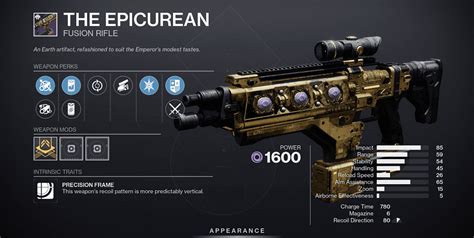 Learn all possible the epicurean rolls, view popular perks on. Web the epicurean fusion rifle is one of the opulent weapons that received rework for season of the haunted, complete with a. Learn all possible the epicurean rolls,. Question as the title states, what are the god rolls for each of these crafted weapons?. I crafted the epicurean yesterday and it was very good in pvp. Along the fabled beloved and austringer, the epicurean also returns as a. Ago gotenks2nd what is the god roll for the epicurean? This article is part of a. Full stats and details for the epicurean, a fusion rifle in destiny 2. Web the epicurean god roll question hello guys.