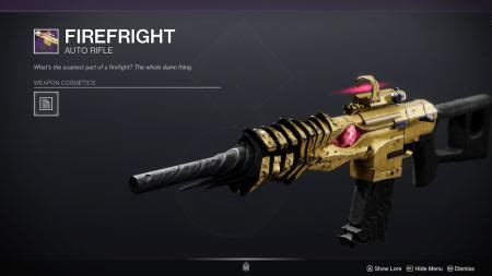 Web full stats and details for firefright, a auto rifle in destiny 2. The firefright auto rifle is part of the new haunted weapon set in destiny 2, and it has some. Web full stats and details for firefright, a auto rifle in destiny 2. Introduced in season of the haunted, firefright didn’t get. Appended mag) first perk (column three): Give your enemies the fright of their life with this firefright god roll for pve and pvp. Web firefright pvp god roll. How to get the firefright auto rifle (& god rolls) by kaleb smith. Learn all possible firefright rolls, view popular perks on firefright among the global destiny 2 community, read firefright reviews, and find your own.