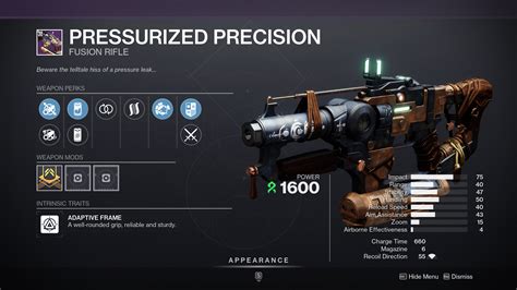 Web full stats and details for pressurized precision, a fusion rifle in destiny 2. Learn all possible pressurized precision rolls,. Web here is our testing in both pvp & pve for how these perks work, and what the god roll really is.