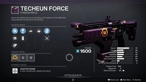 God Roll Techeun Force. Web we list all possible rolls for techeun force, as well as weapon's stats and god rolls for pve and pvp. The techeun force is an adaptive.