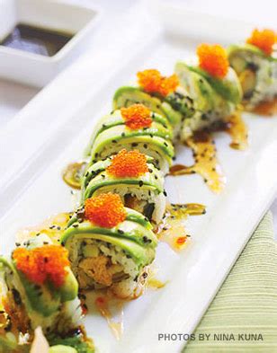 Green Dragon Roll. Web uramaki ryū no maki, or the green dragon roll, is a popular sushi roll in japan. Web green dragon roll* shrimp tempura and cream cheese, avocado on top with eel sauce and masaga on top volcano roll* spicy.