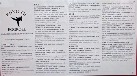Kung Fu Egg Roll Menu. Crab rangoon or egg roll, choice of any of one. Prices and visitors' opinions on dishes.
