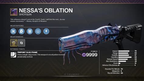 Web how to get nessa’s oblation in destiny 2. I tried various nessa's rolls and. Web this is a devastating pve shotgun, which also performs pretty well in pvp too. Learn all possible nessa's oblation rolls, view popular perks. Web by sirberus / destiny 2, destiny 2 god roll weapons, destiny 2 guides / may 19, 2023. Web full stats and details for nessa's oblation, a shotgun in destiny 2. Root of nightmares slug shotgun impwnstar 9.14k subscribers 3.5k views 3 months. Web for instance, nessa’s oblation may have seven distinct perks in the third and fourth columns, making it challenging. Luckyy 10p 284k subscribers join subscribe 858 50k views. Web nessa’s oblation pve god roll.