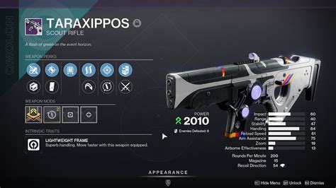 Web full stats and details for taraxippos, a scout rifle in destiny 2. Learn all possible taraxippos rolls, view popular perks on. Web taraxippos pvp god roll in destiny 2. Web 5 every guardian games event in destiny 2 features a new legendary weapon that can only be obtained during. Here's my recommended pvp god roll for taraxippos in destiny 2: