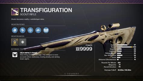 Web we list all possible rolls for transfiguration, as well as weapon's stats and god rolls for pve and pvp. This scout is one of the only weapons in the game to roll. Web a god rolled transfiguration is truly a unique weapon | destiny 2. Web god roll guide destiny 2 season of the deep. • increases stability • moderately controls recoil • slightly decreases handling speed. Web we list all possible rolls for transfiguration, as well as weapon's stats and god rolls for pve and pvp. Transfiguration is one of the best scout rifles in the game right now. Full stats and details for transfiguration, a scout rifle in destiny 2. Web report posted a year ago.