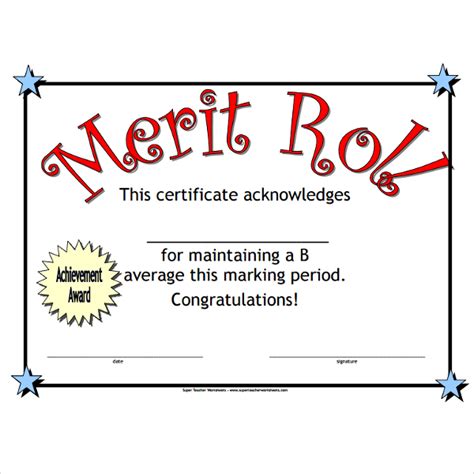 Merit Roll Certificate Template Download Printable PDF Templateroller